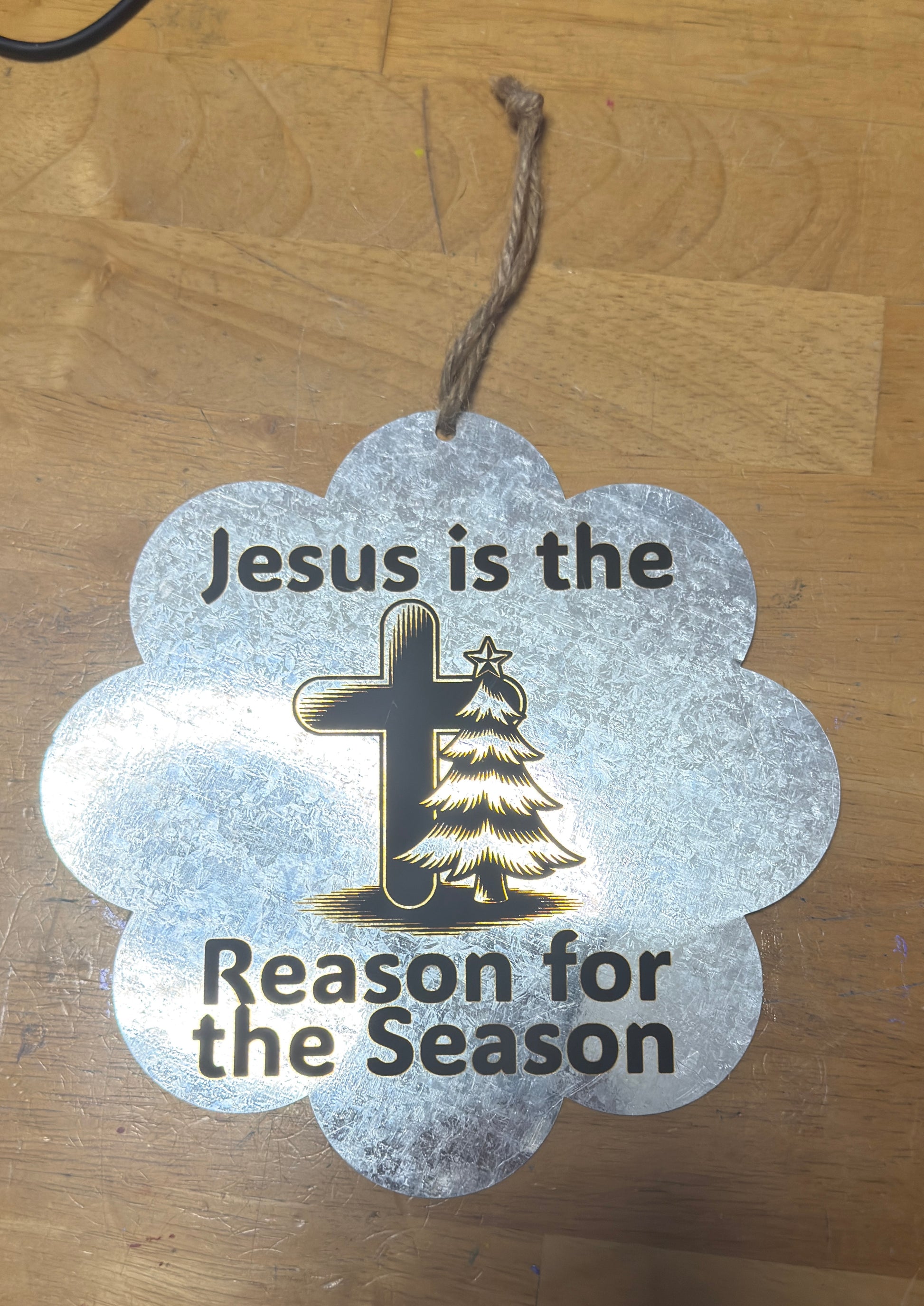 Christmas Season “Jesus Is the Reason for the Season” Laser Engraved Metal Wall Sign (7.25” x 7.25”)